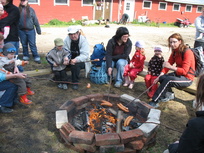 ![]() Lampaat olivat innoissaan leivän antajista | ![]() Makkaranpaisto oli mukavaa auringonpaisteessa hyvässä seurassa |