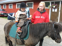 ![]() Uuno-aasin. | ![]() Lapset sai syöttää leipää kilipukeille | ![]() Pikkuponilla oli mukavaa ratsastaa |