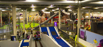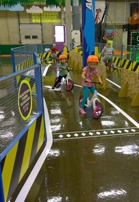 Nimestään huolimatta itse alue tuntui sopivan kokoiselta, ei liian suurelta, jotta sinne hukkaisi vilkkaan viisivuotiaan, ainakaan kovin pitkäksi aikaa. Paikan päällä sai testata koko perheen voimin monenmoisia urheilulajeja, hyppiä, juosta ja kiipeillä. Kuitenkin matkaan kannattaa varata sisäliikuntavaatteet ja erityisesti kengät tai tossut jos haluaa välttää liukastumishaverit.
